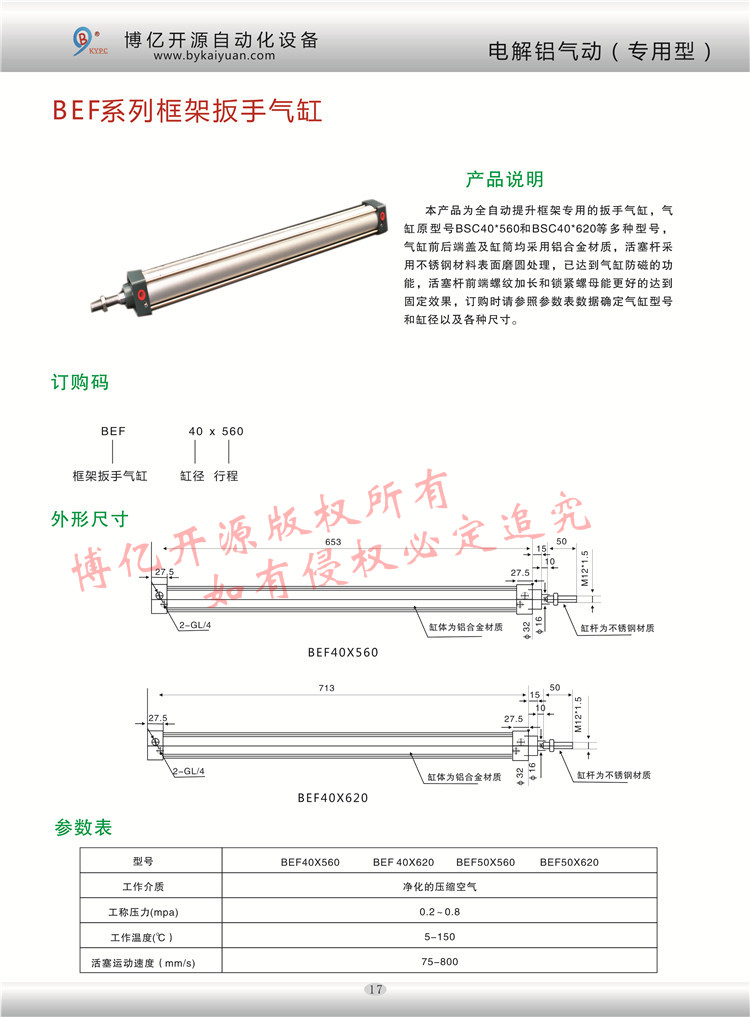【產(chǎn)品型號(hào)】:BEF40*560,BSC40*620,BEF50*620,行程和缸徑可按要求定制