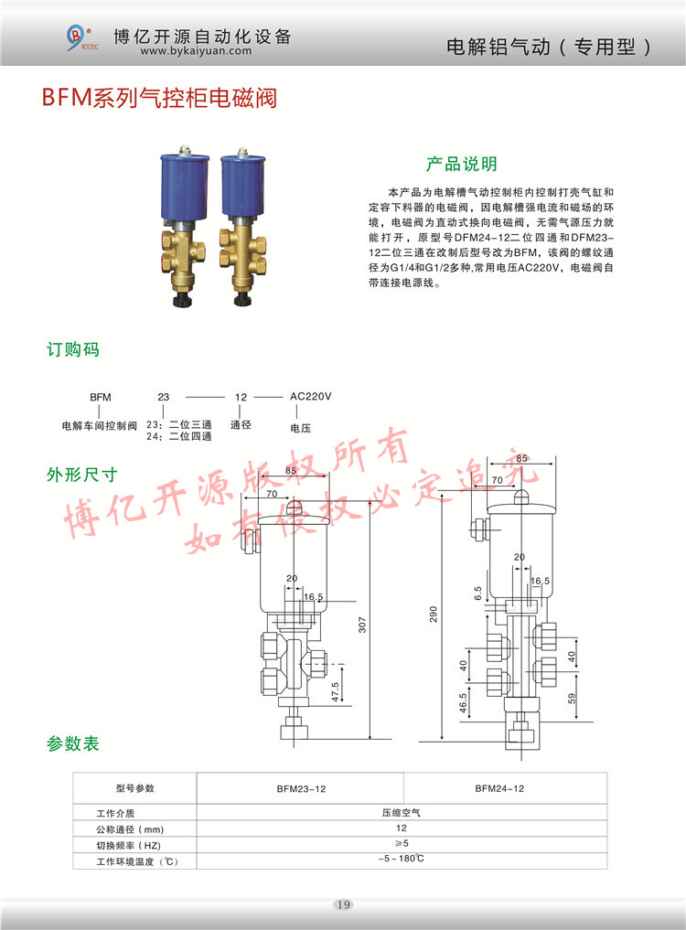 型號(hào)2402250.1301二位三通電磁閥和2502250.1301二位四通電磁閥主要用于電解槽控制柜內(nèi)控制打殼氣缸和定容下料器,更多的技術(shù)咨詢請(qǐng)聯(lián)系本公司技術(shù)部:0371-85612788。
