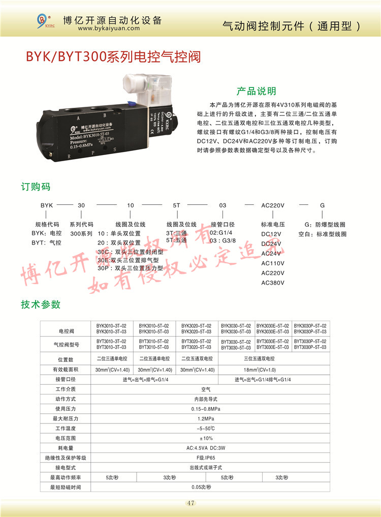 【產(chǎn)品名稱】:BYK/BYT300系列電控氣控閥