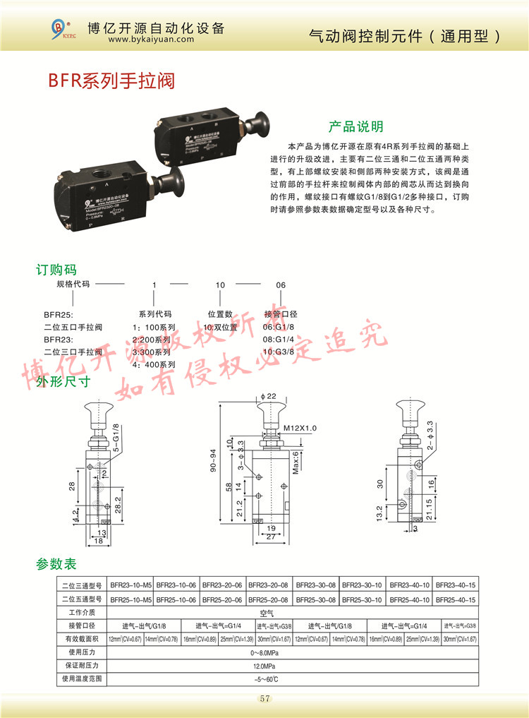 BFR系列手拉閥主要分為二位五通和三位五通手動控制閥,該閥是通過后部手推桿來控制閥體內(nèi)部的閥芯從而達到換向的作用。訂購電話:0371-85618561。