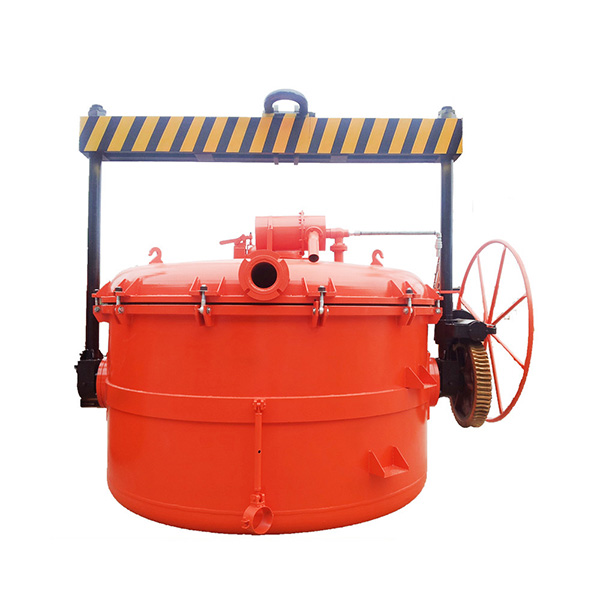 1.外形為圓柱狀,方便制作、節(jié)省材料、與同體積錐桶形真空抬包相比,散熱面積小,有利于保溫。雖然錐桶形抬包比圓柱狀抬包更有利于清理熔渣及殘余鋁液,但對(duì)于大容積抬包清除殘?jiān)演^為方便。