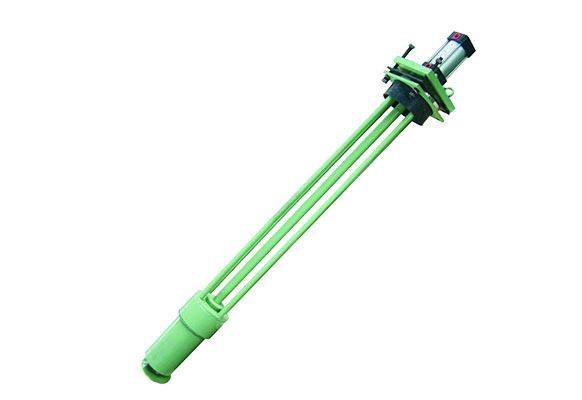 桿式無刷定容下料器由四根拉桿銅上方法蘭板連接,其中一根鋼管上接進(jìn)氣口下接定容器上蓋,上蓋上設(shè)有環(huán)形排氣孔。定容腔上密封件采用錐體密封件,下密封件采用閥蓋,這種結(jié)構(gòu)使上升和下落的阻力小,同時定容準(zhǔn)確?紤]在電解強磁場環(huán)境中工作,鐵件很容易受到強磁影響,錐體密封件與下閥蓋之間連接采用萬向節(jié)連接。在定容腔入料口附件帶有沸騰裝置,使此處的氧化鋁粉完全流態(tài)化,不會產(chǎn)生安息角,定容精度高,穩(wěn)定性好。