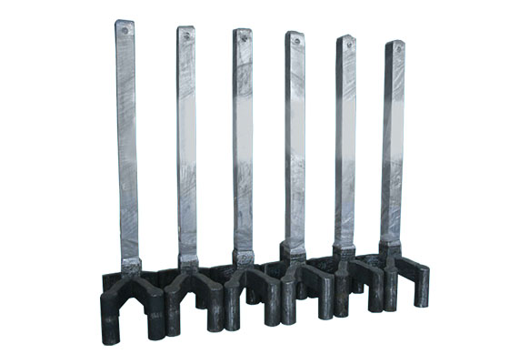 陽極鋼爪的上部連接爆炸塊和導桿機組,有兩爪,三爪,四爪,六爪,八爪等型號。為了確保與陽極導桿的牢固連接,澆道不能在鋼爪的上部。