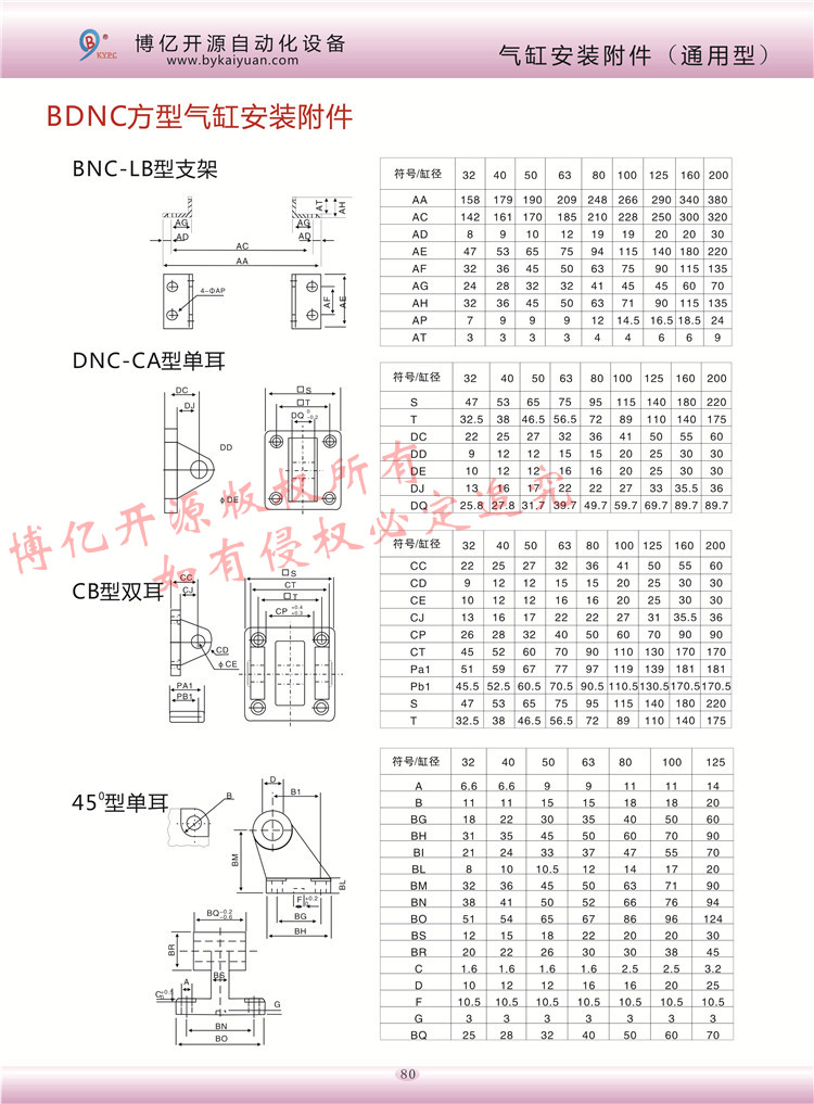 BDNC系列方型氣缸是博億開源自主研發(fā)的拉桿內(nèi)藏式式方型標(biāo)準(zhǔn)氣缸,氣缸直徑32-100,氣缸行程根據(jù)客戶選擇貨定制,氣缸可安裝帶磁感應(yīng)和各種安裝附件,更多的技術(shù)咨詢請聯(lián)系本公司技術(shù)部:0371-85612788