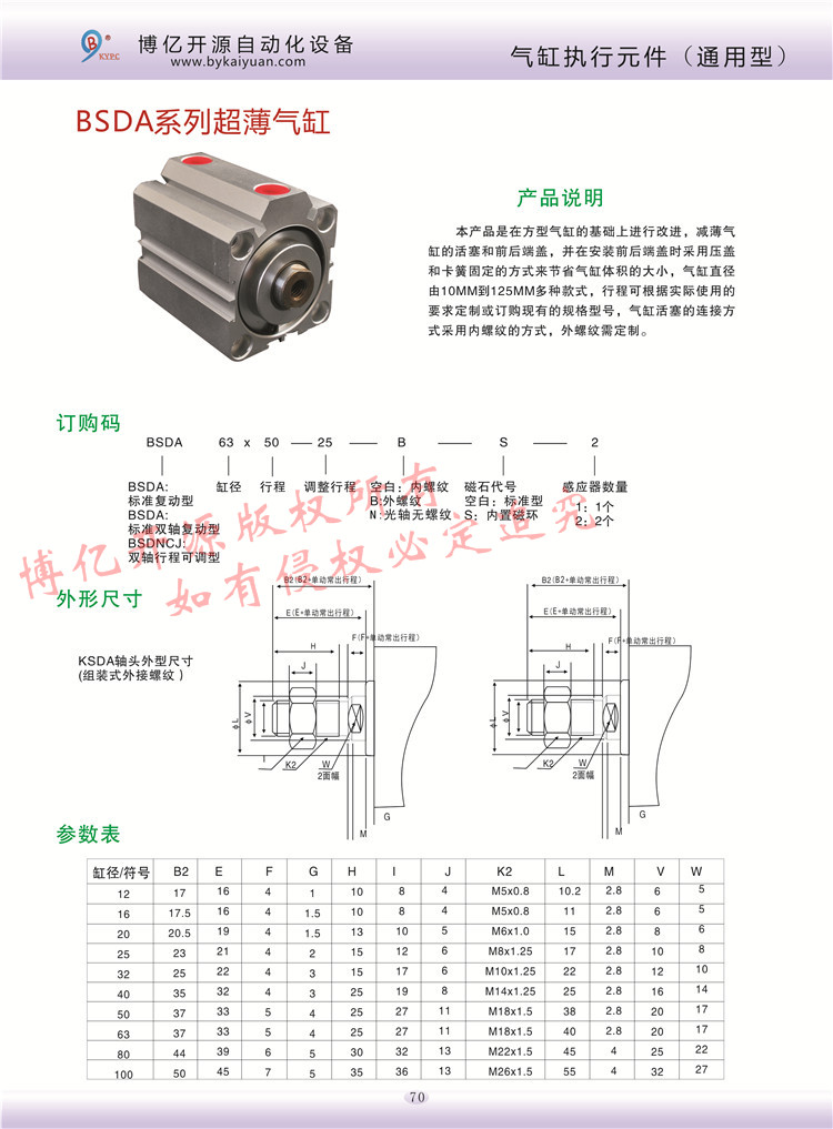 BSDA系列超薄型氣缸是博億開源自主研發(fā)的緊湊型省空間安裝氣缸,氣缸直徑10-125,氣缸行程根據(jù)客戶選擇貨定制,氣缸可安裝帶磁感應(yīng)和各種安裝附件,更多的技術(shù)咨詢請聯(lián)系本公司技術(shù)部:0371-85612788。
