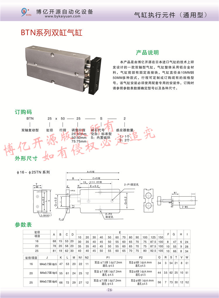 【產(chǎn)品名稱】:BTN系列雙軸氣缸